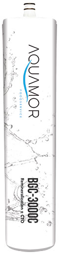 The BGC-3000C cartridge slowly releases minerals into the water to improve the quality of the beverage, when a higher mineral level is needed. The BGC-3000C cartridge can be used in a multi head design for a higher level of mineral release. The cartridge will reduce chlorine, taste, odor and improve clarity. It will balance corrosive/acidic water usually produced by reverse osmosis.